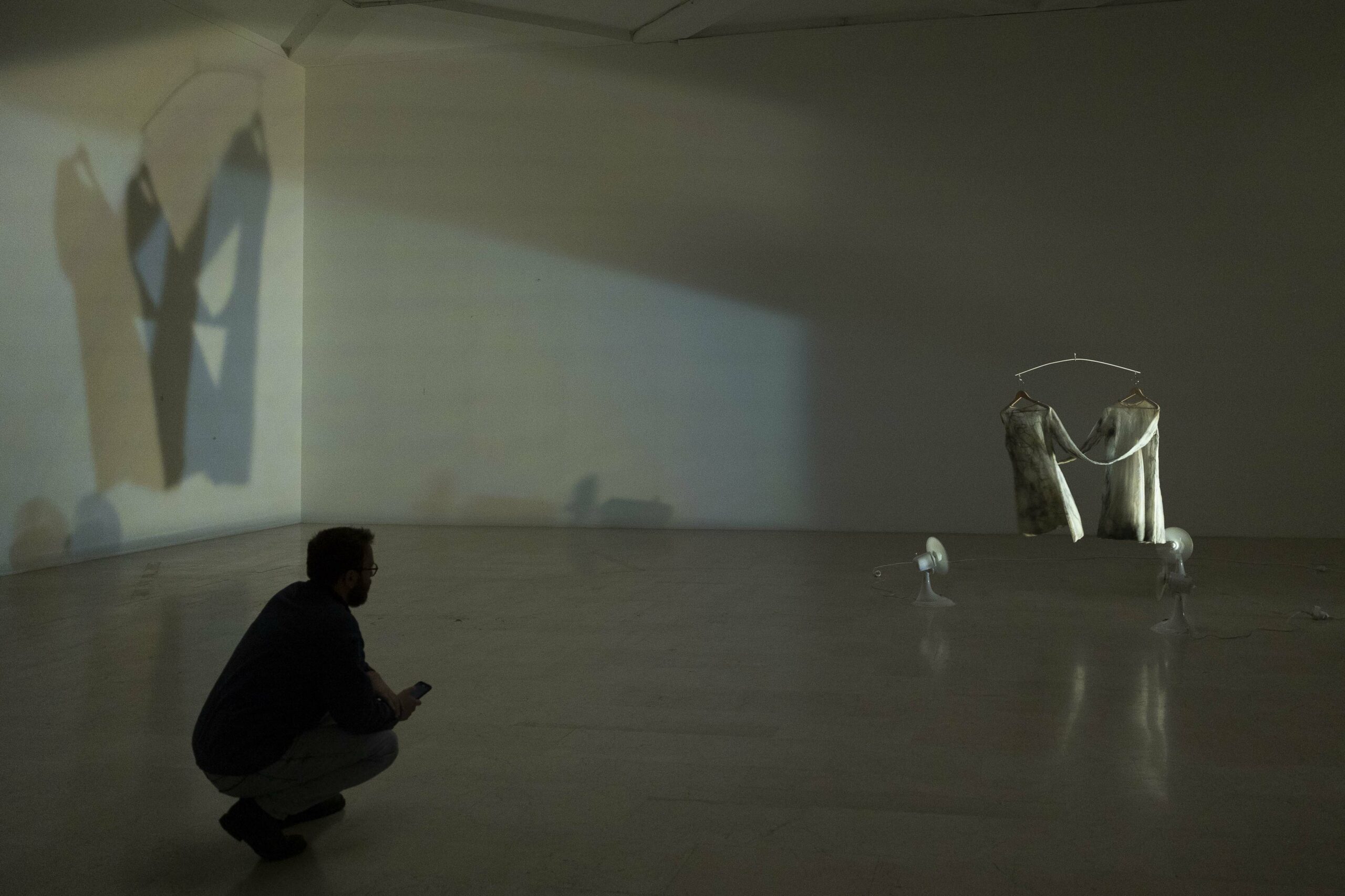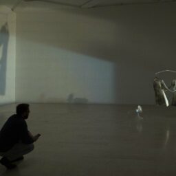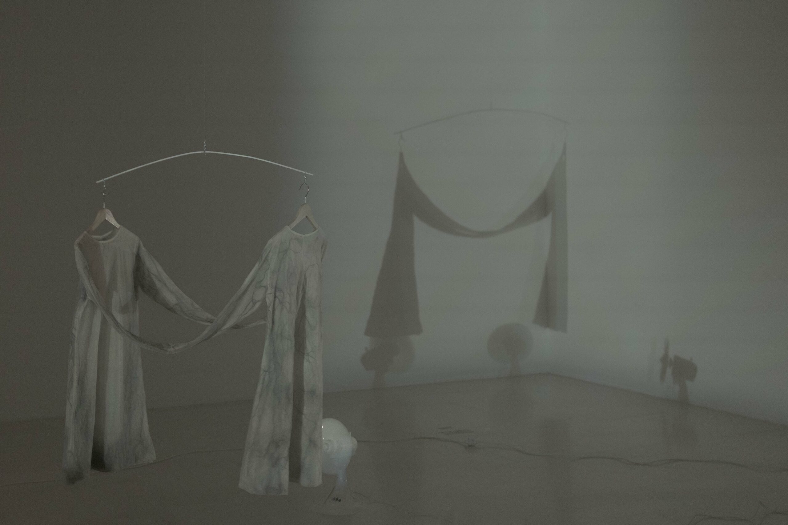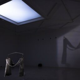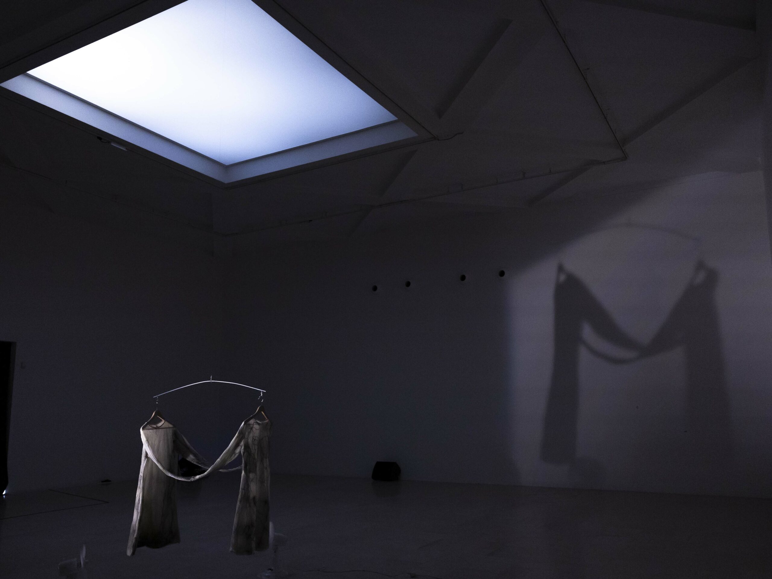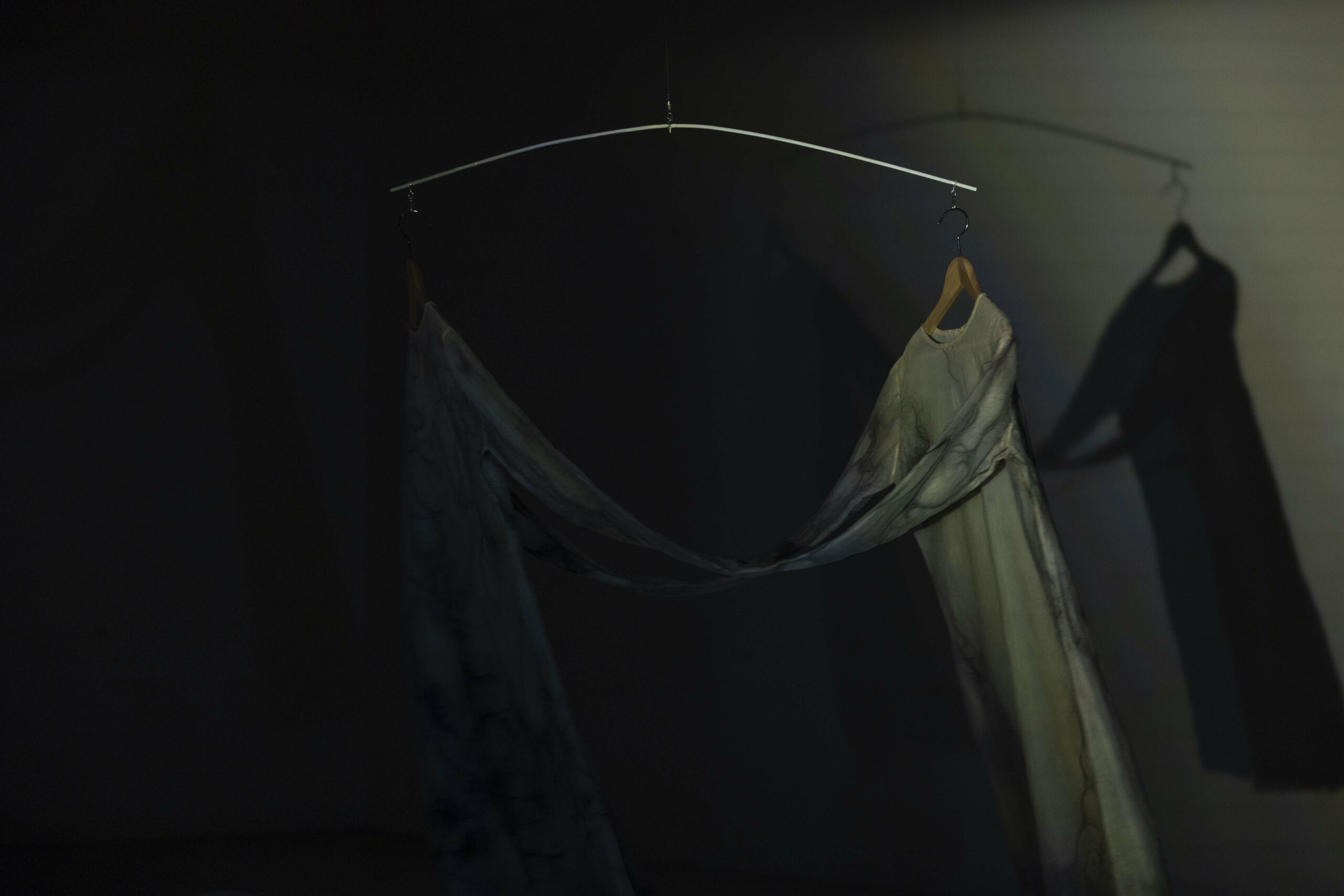 100% polyester, objet dansant n° (à définir) est un projet qui tient sur la fragilité et la simplicité de la proposition. Il me paraît donc important de recontextualiser cet objet à chaque représentation. Ainsi, l’accrochage/le temps/le déroulement/la matière sont modifiés en fonction du lieu architectural. »