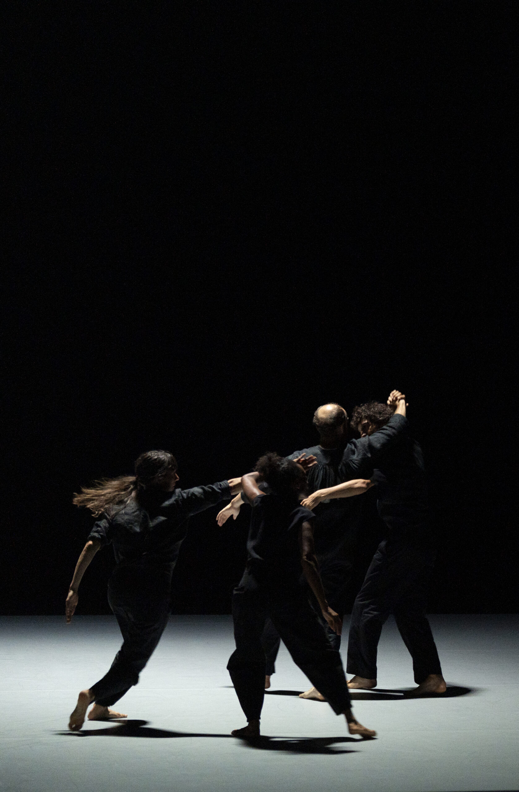 Conceived today as an epilogue to the trilogy of the invisible—“une maison”, “en son lieu” and “miramar”—”à l’ombre d’un vaste detail, hors tempête” embraces the notion of emptiness as a sine qua non condition for relationship with the other. Carried by a cast of seven dancers, the choreographic composition relies on principles of temporal ellipses, weaving together fragments and dramaturgical continuity. Seeking a state of peaceful happiness, the dance slips into a fluid gap between abstraction and narrative, between the concreteness of gesture and its poetic force. Bursts and suspensions then intertwine with sound, light and text to celebrate, in the words of poet Philippe Jaccottet: “Nothing but space, and in the midst of it, this murmur, eternal.”